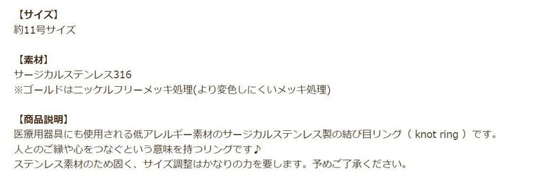 医療用器具にも使用される低アレルギー素材のサージカルステンレス製の結び目リング( knot ring )です。
