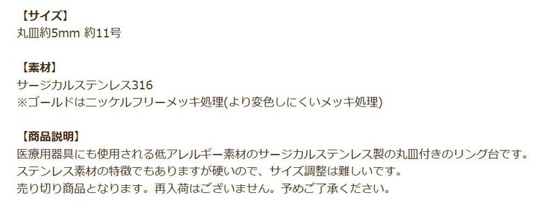 金アレ 316 素材 材料 ニッケルフリー 敏感肌 指輪 リング台