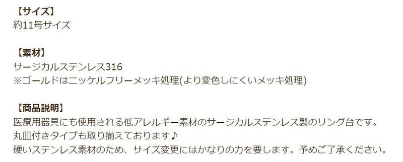 金アレ 316 素材 材料 ニッケルフリー 敏感肌 指輪 リング台