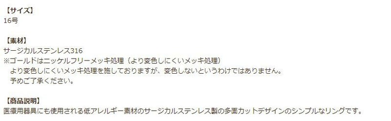 金アレ 316 素材 材料 ニッケルフリー 敏感肌 指輪 華奢 細い
