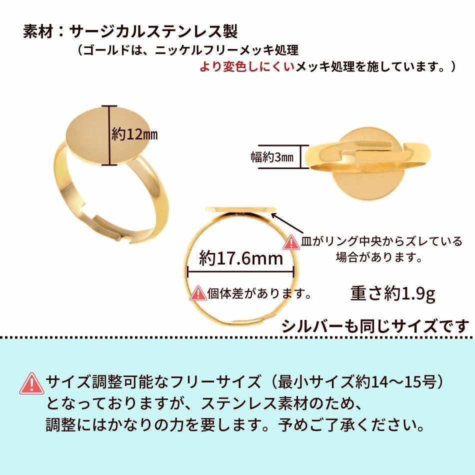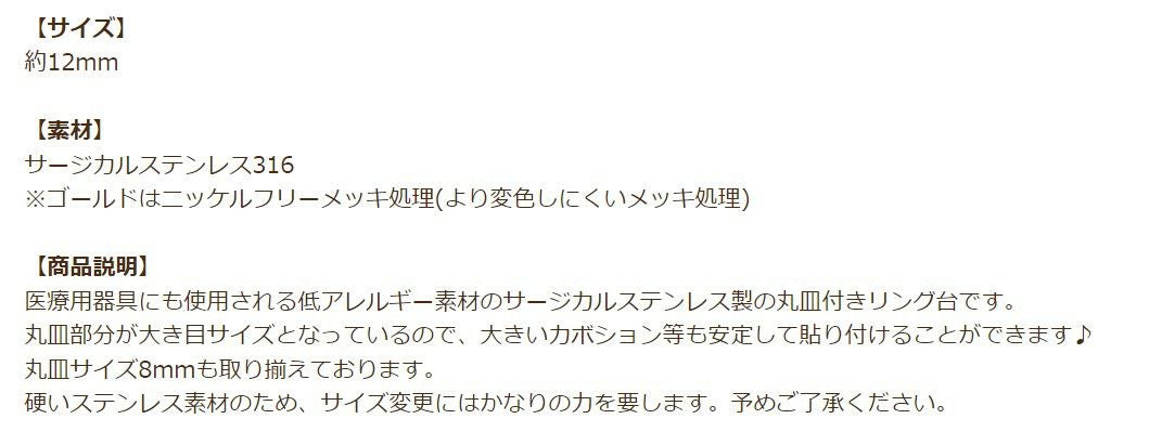 かぶれや皮膚トラブルのリスクを軽減するステンレス指輪の台座パーツ多数!