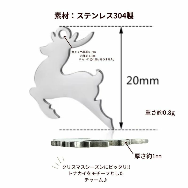 [1個] カン付き クリスマス チャーム [ 銀 シルバー ] ステンレス 選べるチャーム トナカイ クリスマスツリー パーツ チャーム 小ぶり 冬 スノー 金属アレルギー対応 O-03