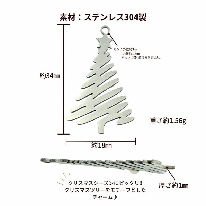 金アレ ステンレス 素材 材料 敏感肌 チャーム 雪 クリスマス トナカイ クリスマスツリー