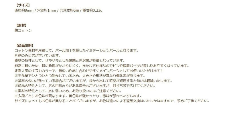 * 送料込み * [4個] コットンパール 【 片穴 】 8mm * キスカ * 丸 パーツ 素材 O-01