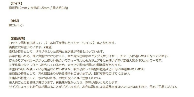 * 送料込み * [4個] コットンパール 【 両穴 】 12mm * キスカ * 丸 パーツ 素材 O-01