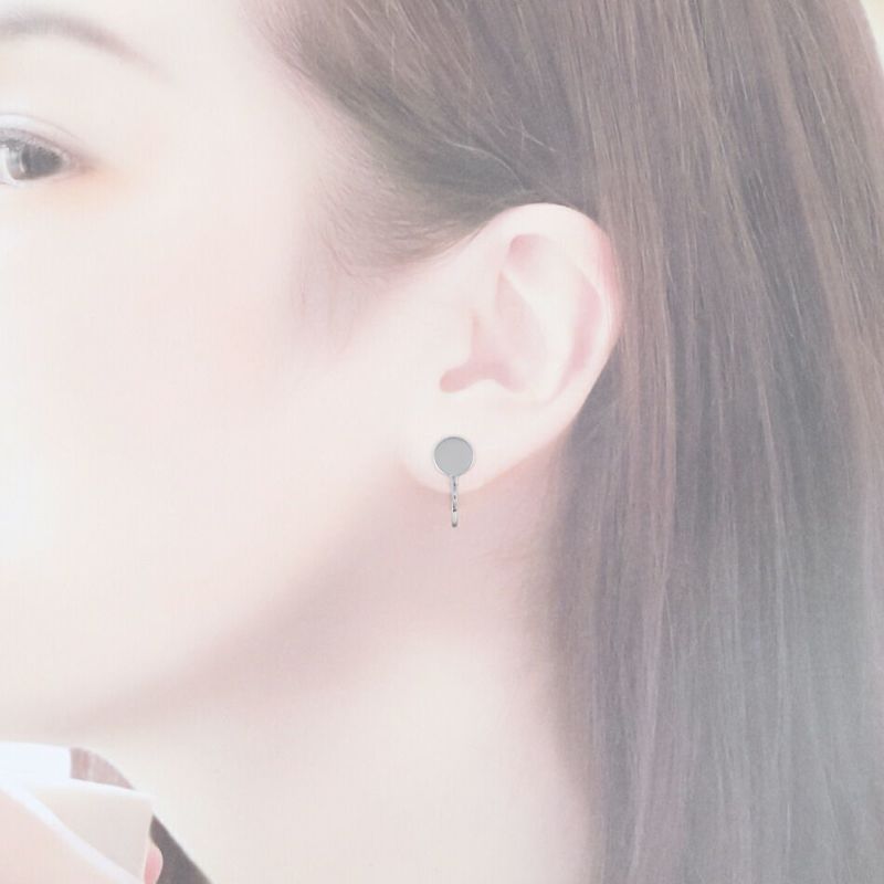 真鍮製の土台にニッケルフリーメッキ処理を施したネジバネ式のカン付き丸皿イヤリングです。