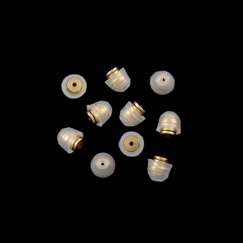 [2個] * 送料込み * 落ちない ピアス キャッチ シリコンカバー付き [ ゴールド / 透明 ] 取れない 外れにくい サージカルステンレス 金属アレルギー対応 P2-03