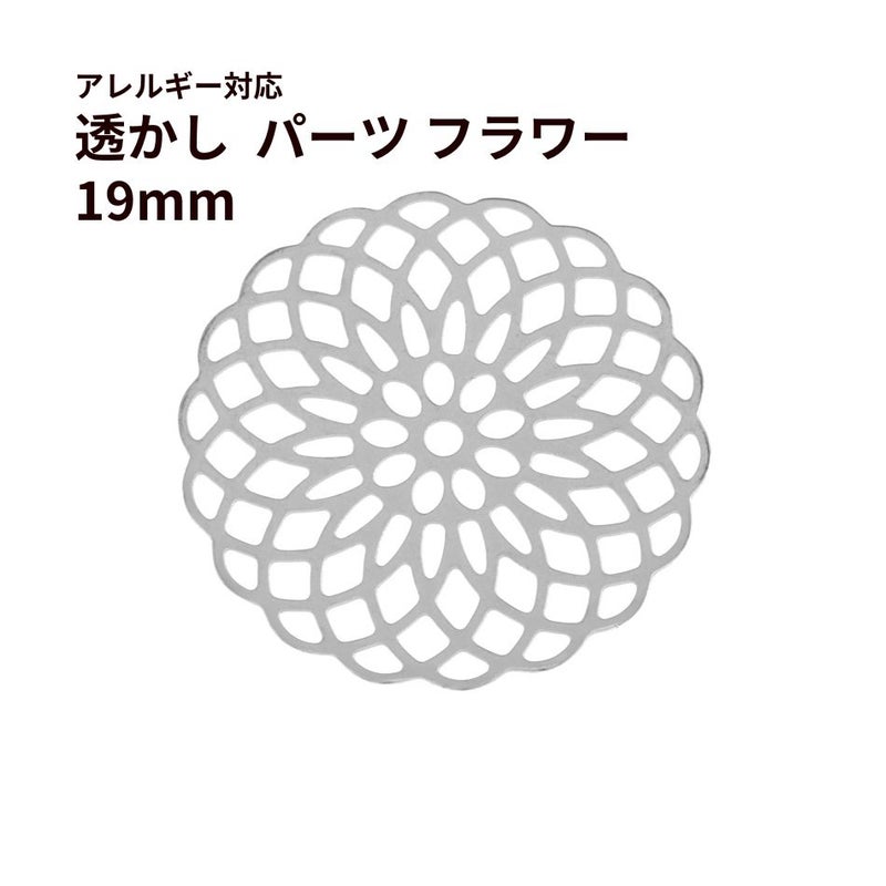 * 送料込み *[ 2個 ] 透かし パーツ フラワー 19mm [ 銀 シルバー ] サージカルステンレス チャーム 花 コネクター 繊細 アクセサリーパーツ 金属アレルギー対応 O-05