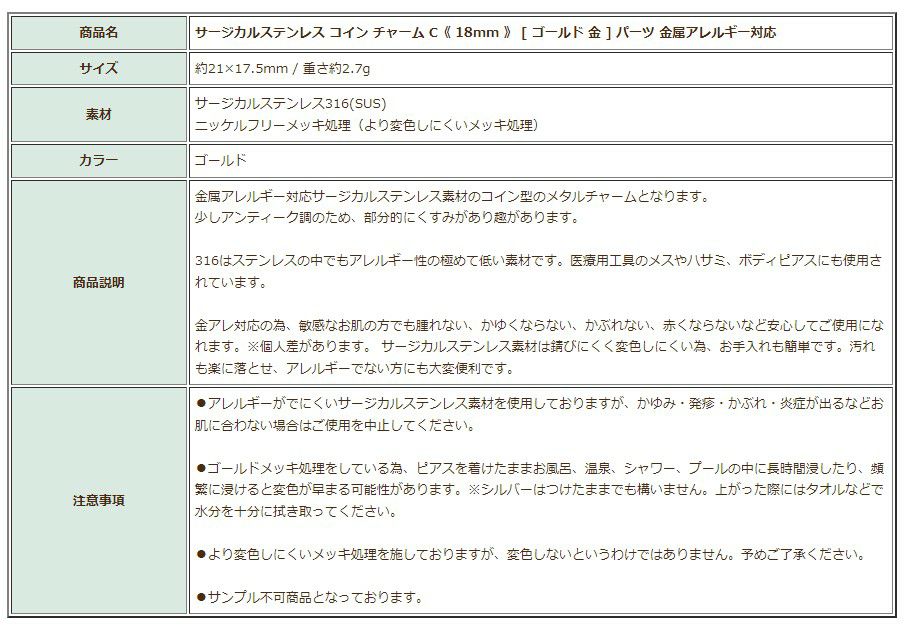ニッケルフリーメッキ 金アレ 316 材料 素材 敏感肌