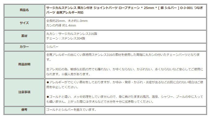 サージカルステンレス チェーンパーツ サージカルステンレス チェーンパーツ