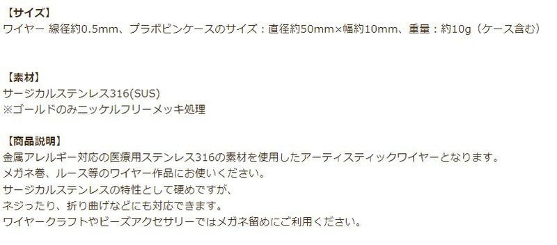 [約10m]サージカルステンレス[24G]アーティスティックワイヤー0.5mm[ゴールド金]ワイヤーワークワイヤーアートアクセサリーパーツ金アレ