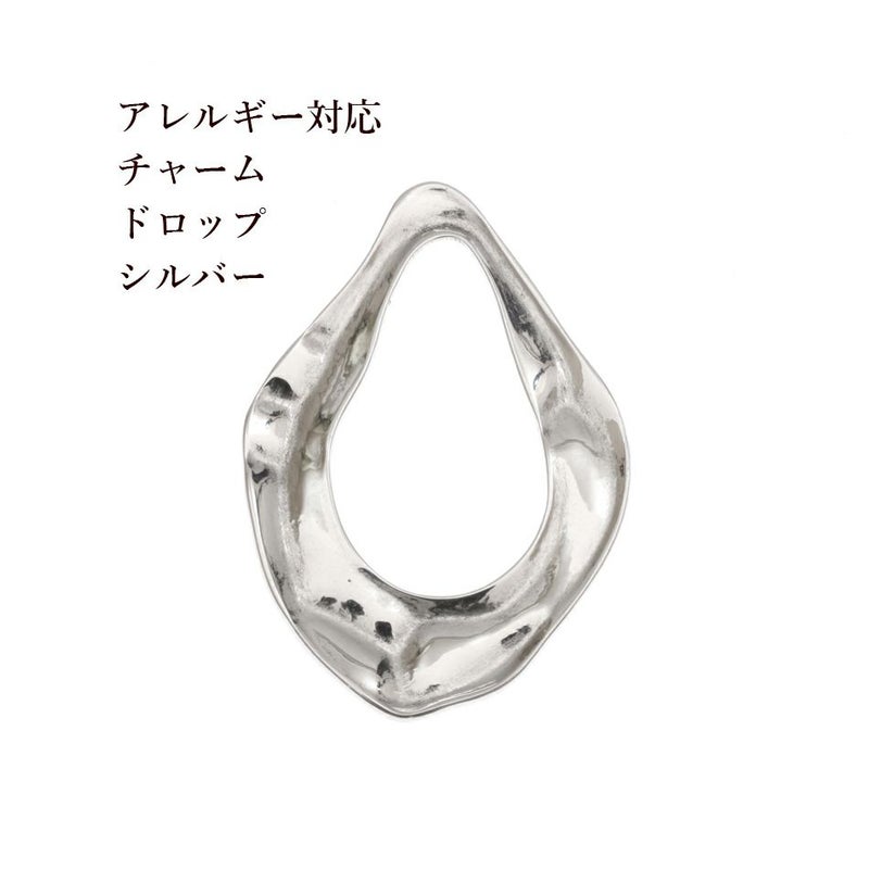 商品説明 金属アレルギー対応サージカルステンレス素材の波打った形状のドロップ型のメタルチャームとなります。