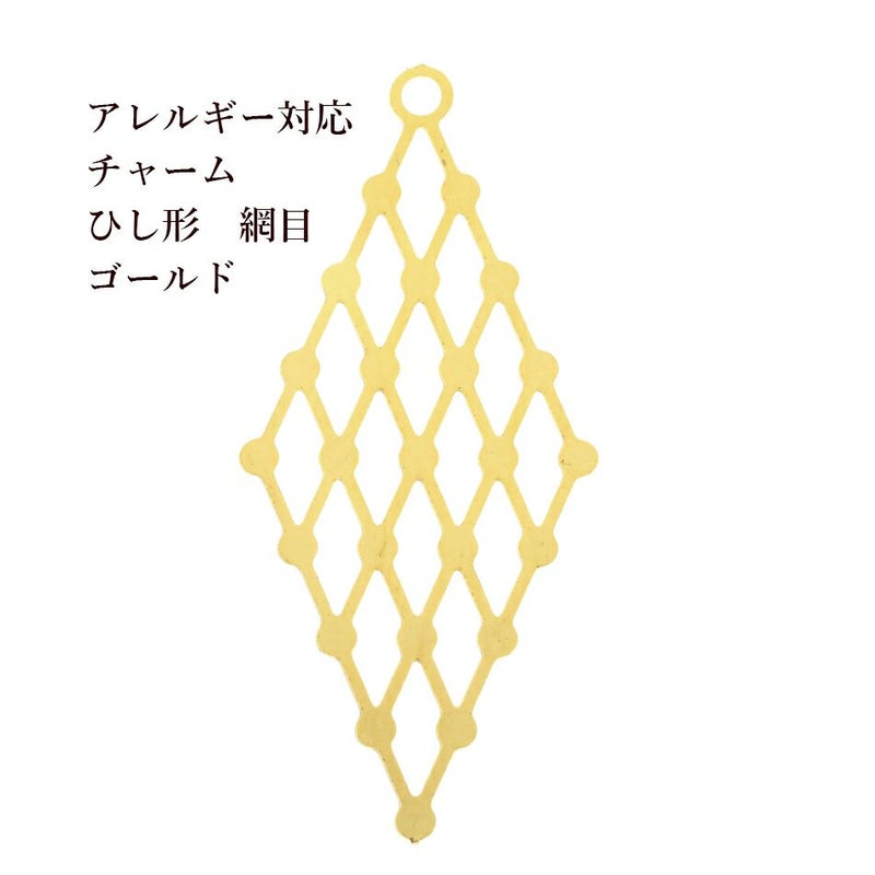 商品説明 金属アレルギー対応サージカルステンレス素材の網目上のひし形のメタルチャームとなります。