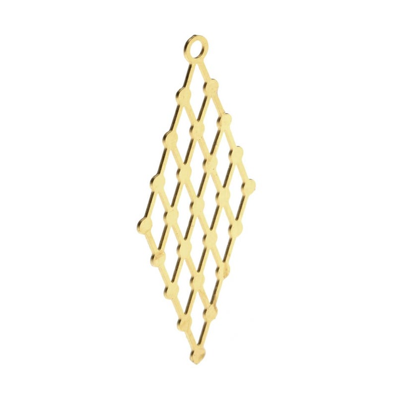 [10個] サージカルステンレス カン付き ひし形 チャーム 網目 [ ゴールド 金 ] パーツ 素材 金属アレルギー対応