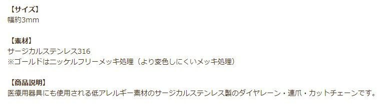医療用器具にも使用される低アレルギー素材のサージカルステンレス製のダイヤレーン・連爪・カットチェーンです。