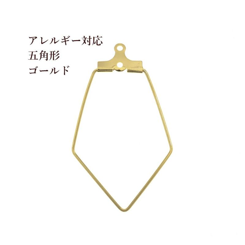商品名 サージカルステンレス 五角形 カン付き フープ 金具 [ ゴールド 金 ] パーツ 幾何学 ペンタゴン ハンドメイド 素材 金属アレルギー