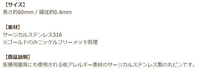 [50本] 丸ピン 0.6 X 60 mm [ 銀 シルバー ] サージカルステンレス アクセサリー パーツ 金具 金属アレルギー 対応