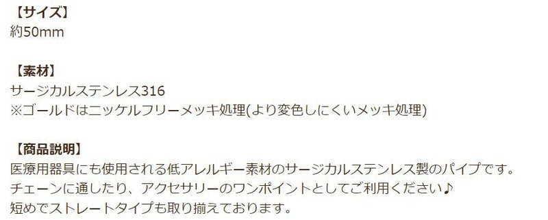医療用器具にも使用される低アレルギー素材のサージカルステンレス製のパイプです。