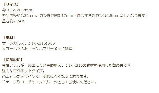 金属アレルギー 材料 お手入れ簡単 316 留め具 磁石 クラスプ
