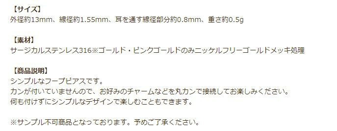 金アレ 316 素材 材料 金具 フープ アレルギー対応パーツ ニッケルフリー 敏感肌