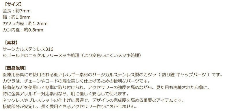 医療用器具にも使用される低アレルギー素材のサージカルステンレス製のカツラ( 釣り鐘 キャップパーツ )です。