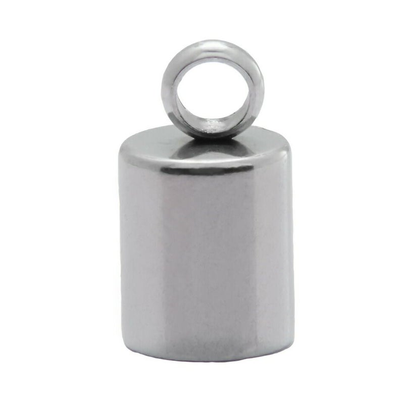 [ 20個 ] カン付き * カツラ * 大 4mm [ 銀 シルバー ] サージカルステンレス 紐留め 革紐 キャップ エンドパーツ 金属アレルギー対応 M1-05