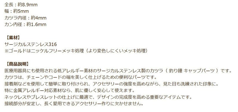 医療用器具にも使用される低アレルギー素材のサージカルステンレス製のカツラ( 釣り鐘 キャップパーツ )です。