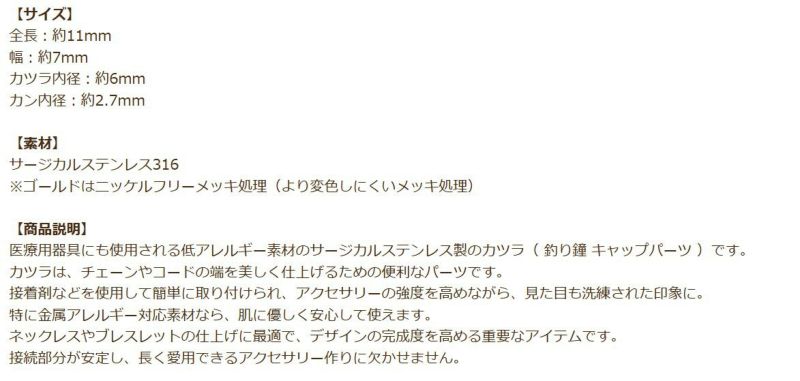 医療用器具にも使用される低アレルギー素材のサージカルステンレス製のカツラ( 釣り鐘 キャップパーツ )です。