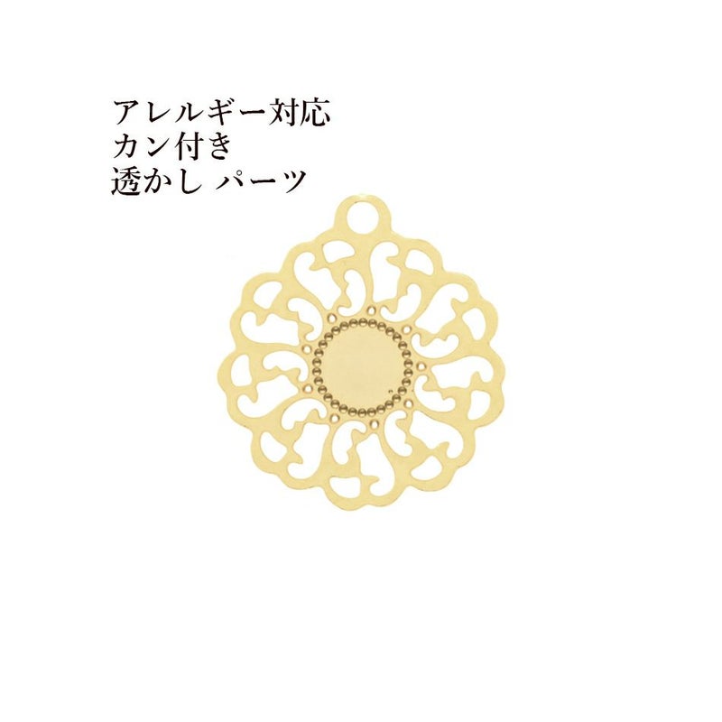 商品名 サージカルステンレス 【 カン付き 】 透かし パーツ [ ゴールド 金 ] パーツ 金属アレルギー対応