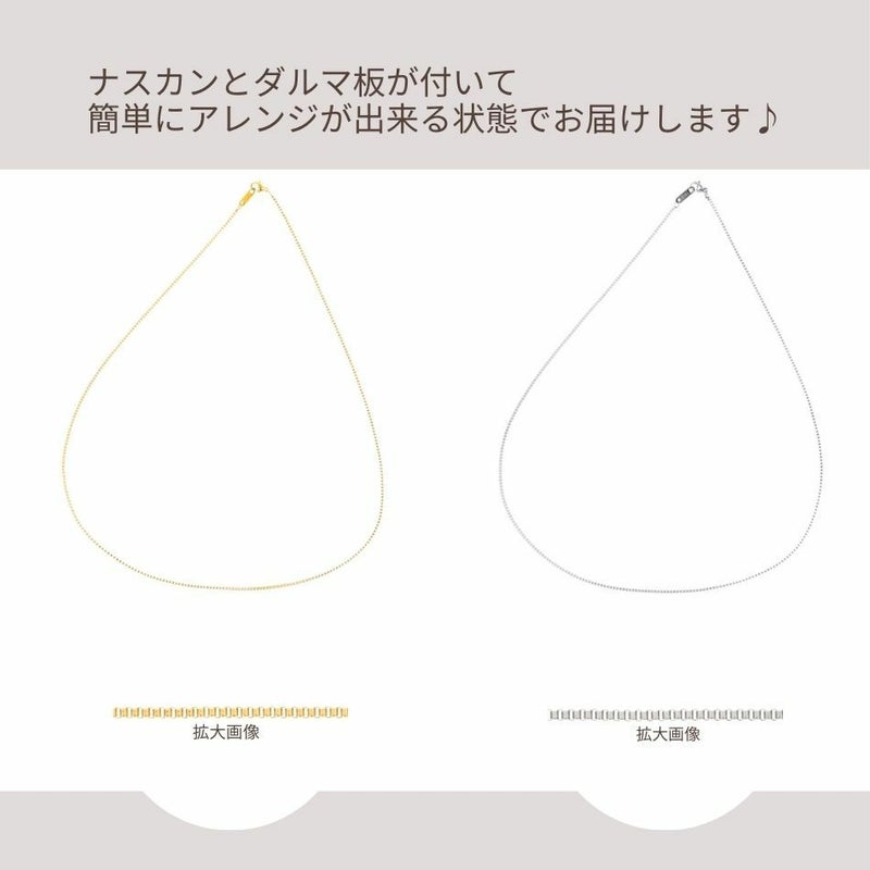 | 注意事項 | ●アレルギーがでにくいサージカルステンレス素材を使用しておりますが、かゆみ・発疹・かぶれ・炎症が出るなどお肌に合わない場合はご使用を中止してください。 ●チェーンを着けたままお風呂、温泉、シャワー、プールの中に浸すと変色が早くなる可能性があります。ご使用になった場合、上がった後はタオルなどで水分を拭き取りください。 ●サンプル不可商品となっております。予めご了承ください。 |
