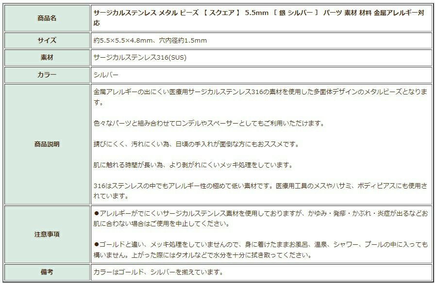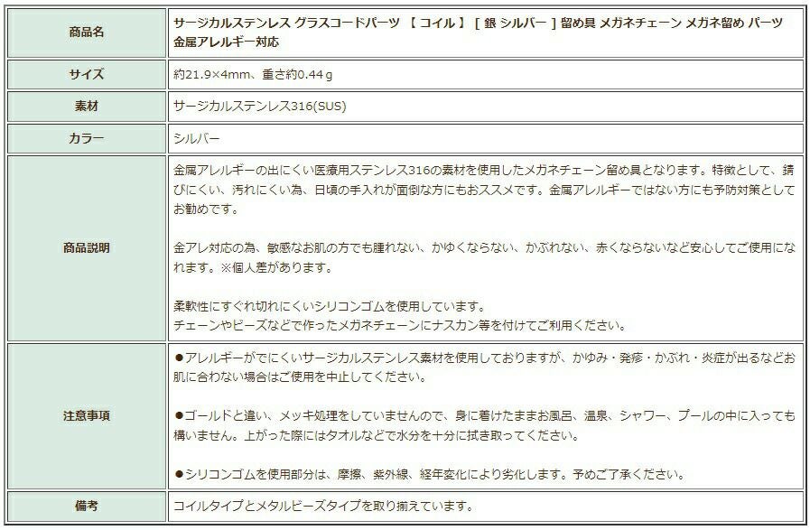 金アレ 素材 接続 316 金具 ニッケルフリーメッキ 敏感肌