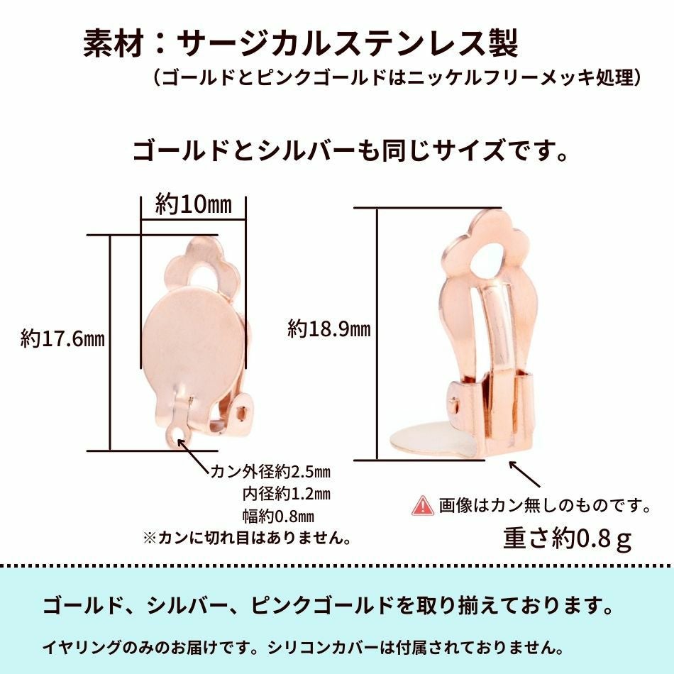 [20個]カン無し クリップ イヤリング [ ★ピンクゴールド ] サージカルステンレス シリコンカバー付き E2-01 パーツ 金属アレルギー対応