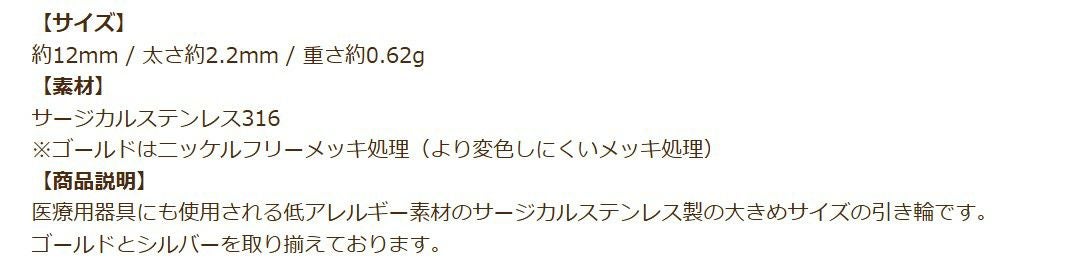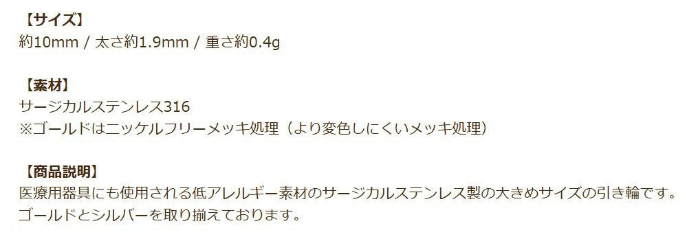 金アレ 316 素材 材料 金具 フープ アレルギー対応パーツ ニッケルフリー 敏感肌