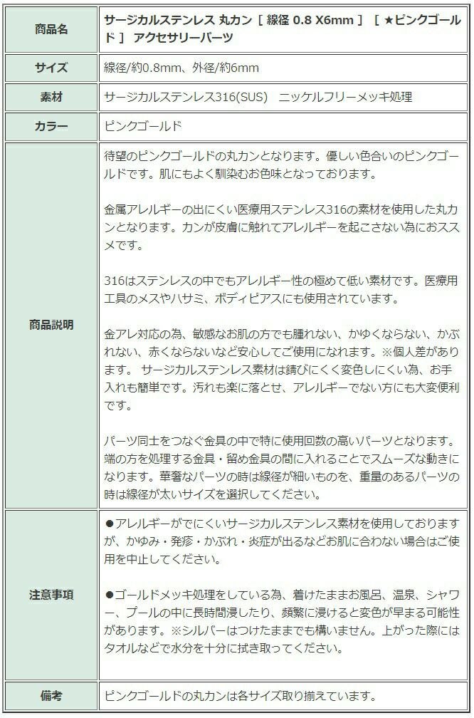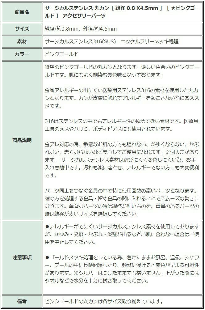 サージカルステンレス 丸カンパーツ サージカルステンレス 丸カンパーツ