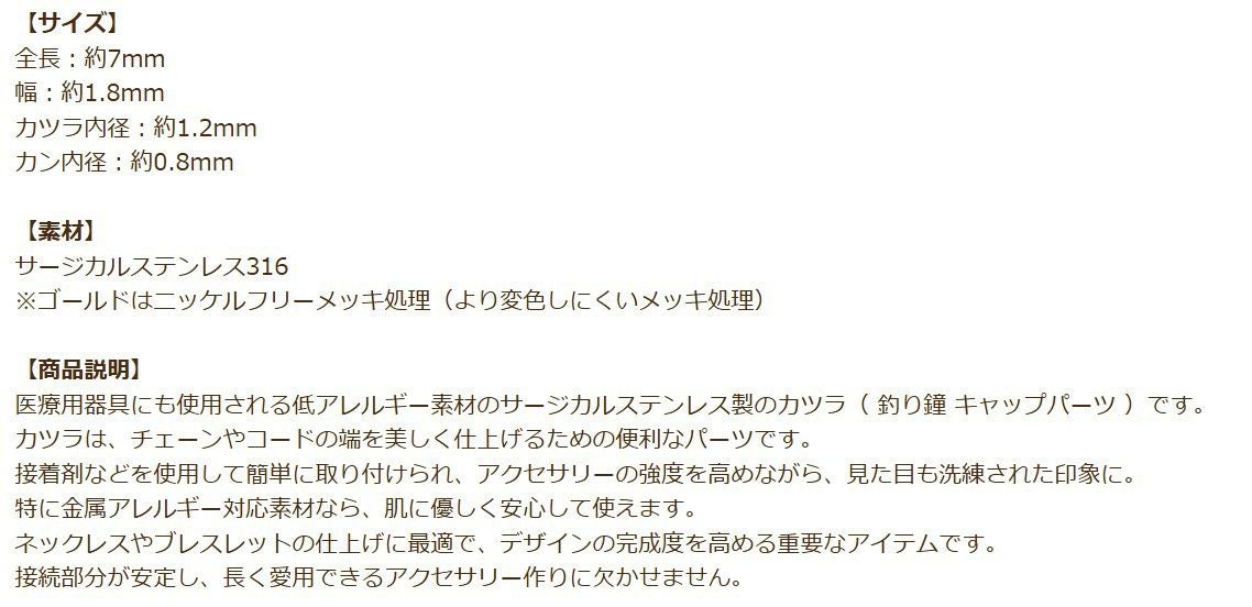 金アレ 素材 接続 316 金具 ニッケルフリーメッキ 敏感肌