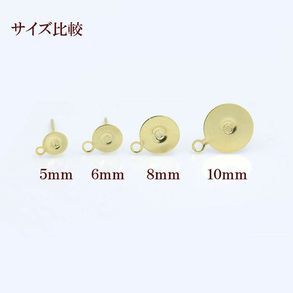 ピアスフック、フープピアス、ピアスポスト(軸)、丸皿、ピアスキャッチは全てサージカルステンレス素材を採用。キャッチは刻印付きなので安心!どんなモチーフ、カボションにも対応できる様々なサイズを取り揃えています。ピアスの付け替えや修理にもお使いいただけます。