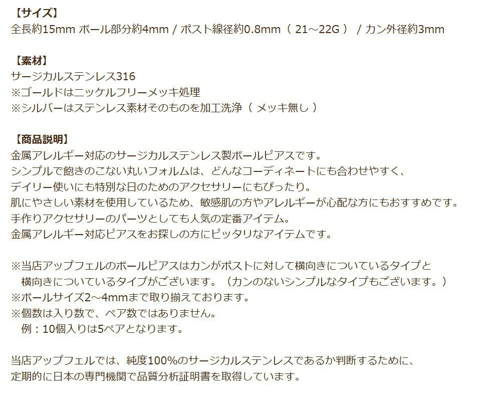 サージカルステンレス ピアスパーツ サージカルステンレス ピアスパーツ