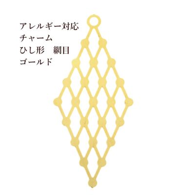 [4個] サージカルステンレス カン付き ひし形 チャーム 網目 [ ゴールド 金 ] パーツ 素材 金属アレルギー対応のレビューを書く