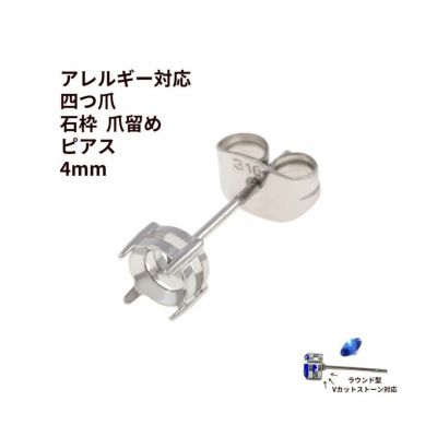 [10個] * 石枠 爪留め * ピアス 4mm [ 銀 シルバー ] キャッチ付き サージカルステンレス 四つ爪 石留め 台座 パーツ 石枠 爪留め 石留め 金属アレルギー対応 P1-06のレビューを書く