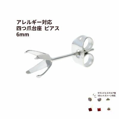 [10個] 四つ爪 台座 ピアス 6mm [ 銀 シルバー ] キャッチ付き サージカルステンレス パーツ 石枠 爪留め 石留め 金属アレルギー対応 P1-06のレビューを書く