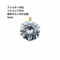 [5個] 縦向き 台座 キュービックジルコニア 《 8mm 》 [ ゴールド 金 ] サージカルステンレス チャーム カン付き パーツ 金属アレルギー対応 O-03