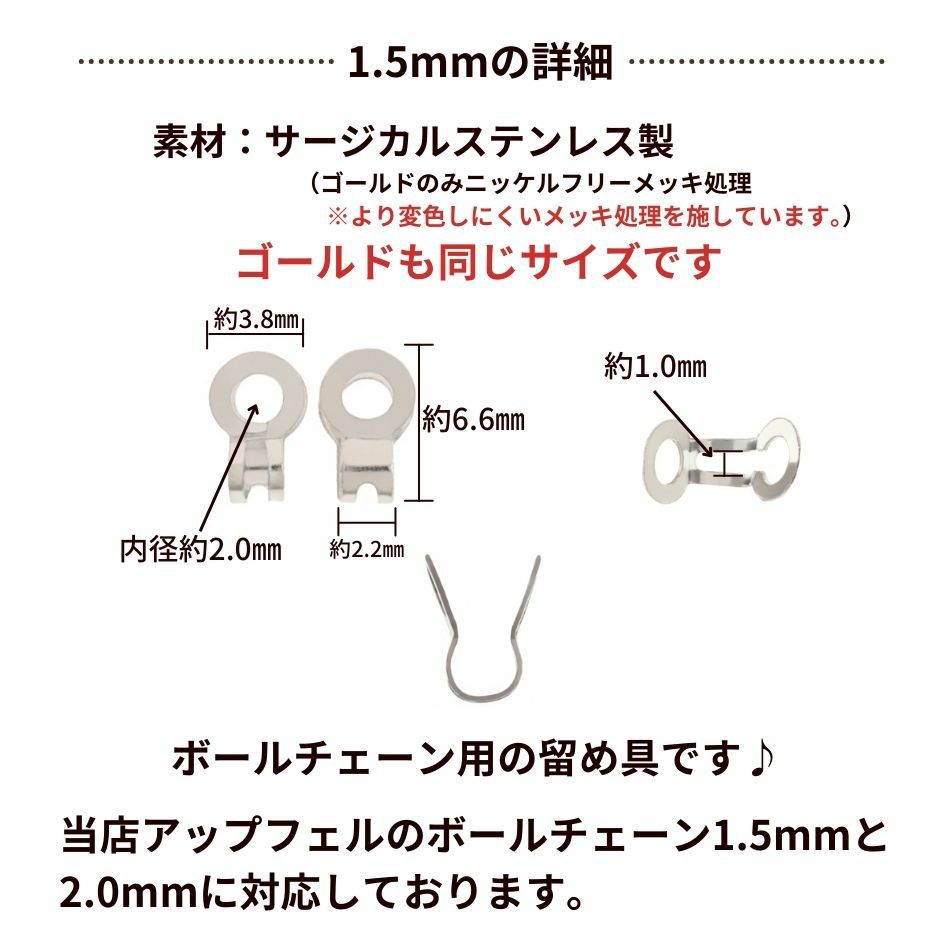 他の画像を見る 金アレ 316 留め具 コネクター エンドパーツ ボールチェーン 316 カップリング 2つ折り ボールチェーン用 コネクター * 大 * [ ゴールド 金 ] サージカルステンレス パーツ 金属アレルギー対応 M2-06 当店特別価格 ¥ 799 税込 〜 当店特別価格 ¥ 税込 詳細を見る お気に入りに登録する