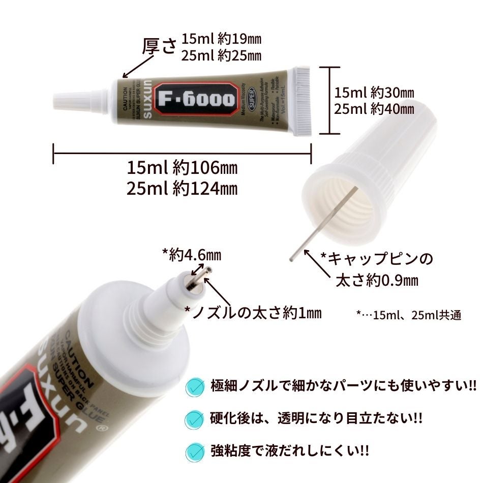 他の画像を見る 接着剤 ボンド 超 強力 金属 ゴム 布 用 プラスチック 多用途 透明 手芸用 最強 プラモデル エポキシ [ 15ml ] 超強力 接着剤 F6000 極細 ノズル 多目的 ボンド O-05 当店特別価格 ¥ 469 税込 カートに入れる お気に入りに登録する